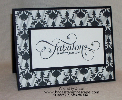 Yesterday I posted Stampin’ Up!s new Designer Series Paper promotion … Buy 3 packs and get one for free! I also said how easy it is to make quick cards by using DSP, ribbon and a greeting, so today, I thought I would share 3 cards with you… that I “whipped” together last night.