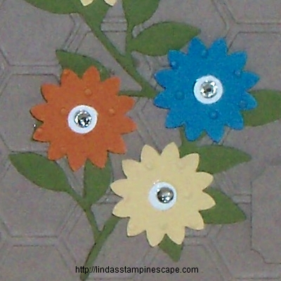 You will need the “Boho Blossoms” punch (119858) to create the flowers, then for the center, get your Owl Builder punch and use the “eyes” for the center of the blossoms! To finish off these cute little flowers … just add rhinestones. What girl doesn’t like a little bit of bling!
