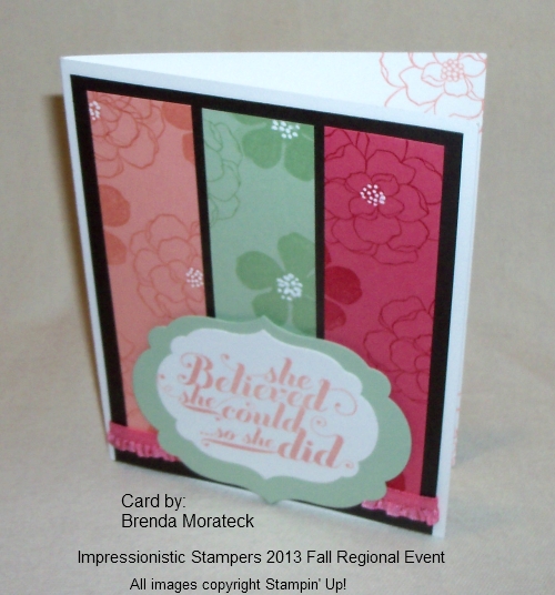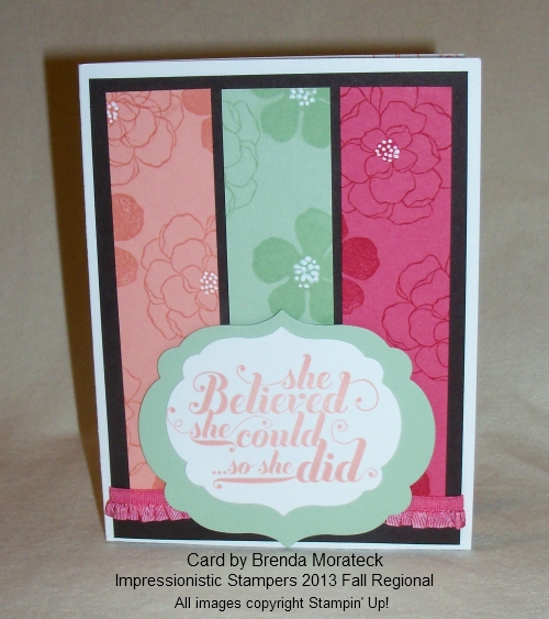 Today I have another card share from Gloria’s Impressionistic Stampers Fall Regional, and downline member (Star’s) Brenda Morateck. It’s a beautiful card showcasing the new In-Colors …