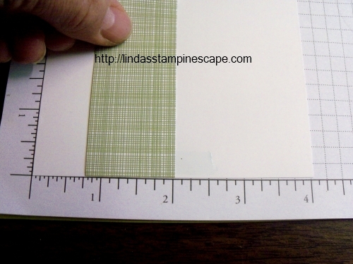What a wonderful way to use up my scraps. This card was super simple to make … I simply cut some scrap pieces of designer paper – 1-1/4″ x 4″. I used the “Gingham Garden” Designer Series Paper.