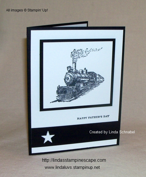 The train stamp comes from the new stamp set: Traveler. This is a perfect set for masculine cards, people who love to travel (of course) and scrapbookers. I can’t wait for you to see the whole set!