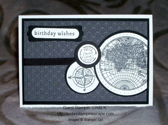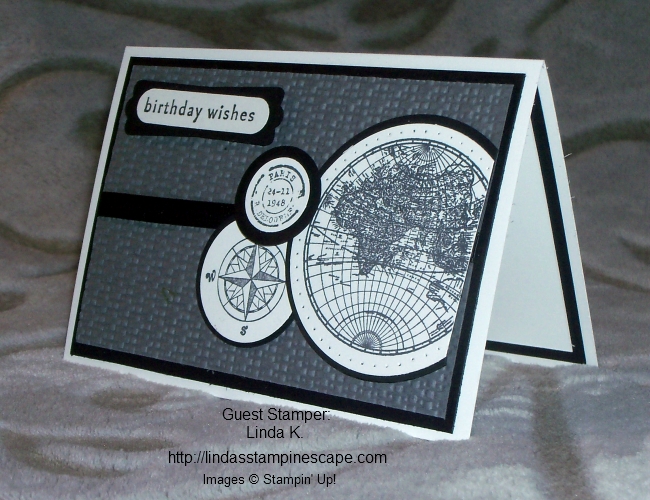 Today I’d like to share with you another card from our Spring (April) Stampin’ Retreat card swap … Our guest stamper today is Linda K.