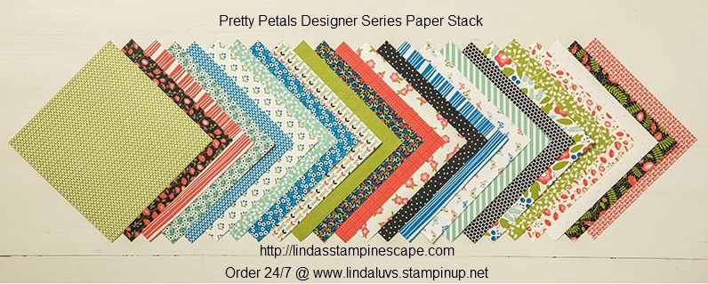 I’m using our “Pretty Petals” Designer Series paper stack. There are so many pretty patterns in this stack and designs you can use on your masculine cards too.  There is never any left overs with a stack of papers this pretty!