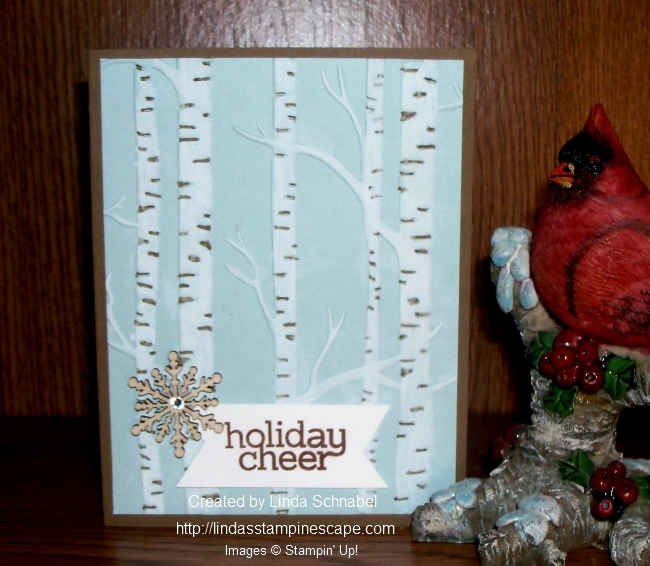 I colored in the indented areas of the tree with my Soft Suede marker to coordinate with the base of my card. Don’t you think it makes the tree more realistic looking? I love White Birch … I think it’s my favorite tree!