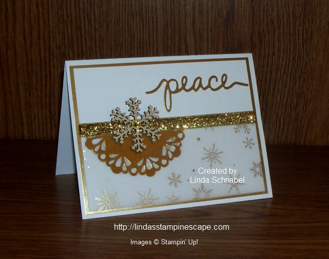 It all began with the “Winter Wonderland Designer Vellum Stack” … and I chose to use the stunning golden snowflakes!! I had the “Metallic Doilies” but have not used them much so decided to pair the two products together.