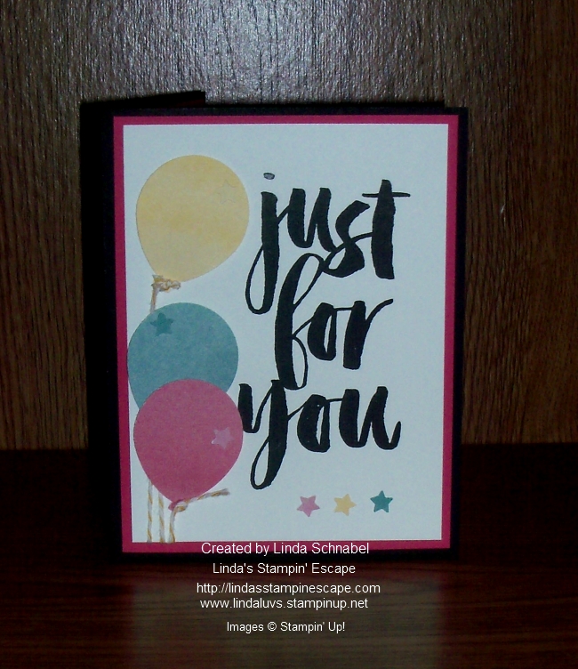Hope you enjoyed our celebration of a “Just for You” birthday card. I have two little grandsons that would love this card, so off I go to swap out some colors and stamp them a card.