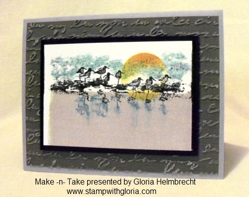 Today I’m going to share a card with you that I made at a demonstrator meeting years ago … just goes to show how some stamp sets are timeless. We used the “Wetlands” stamp set that is still available and can be found on page 133 of our annual catalog.