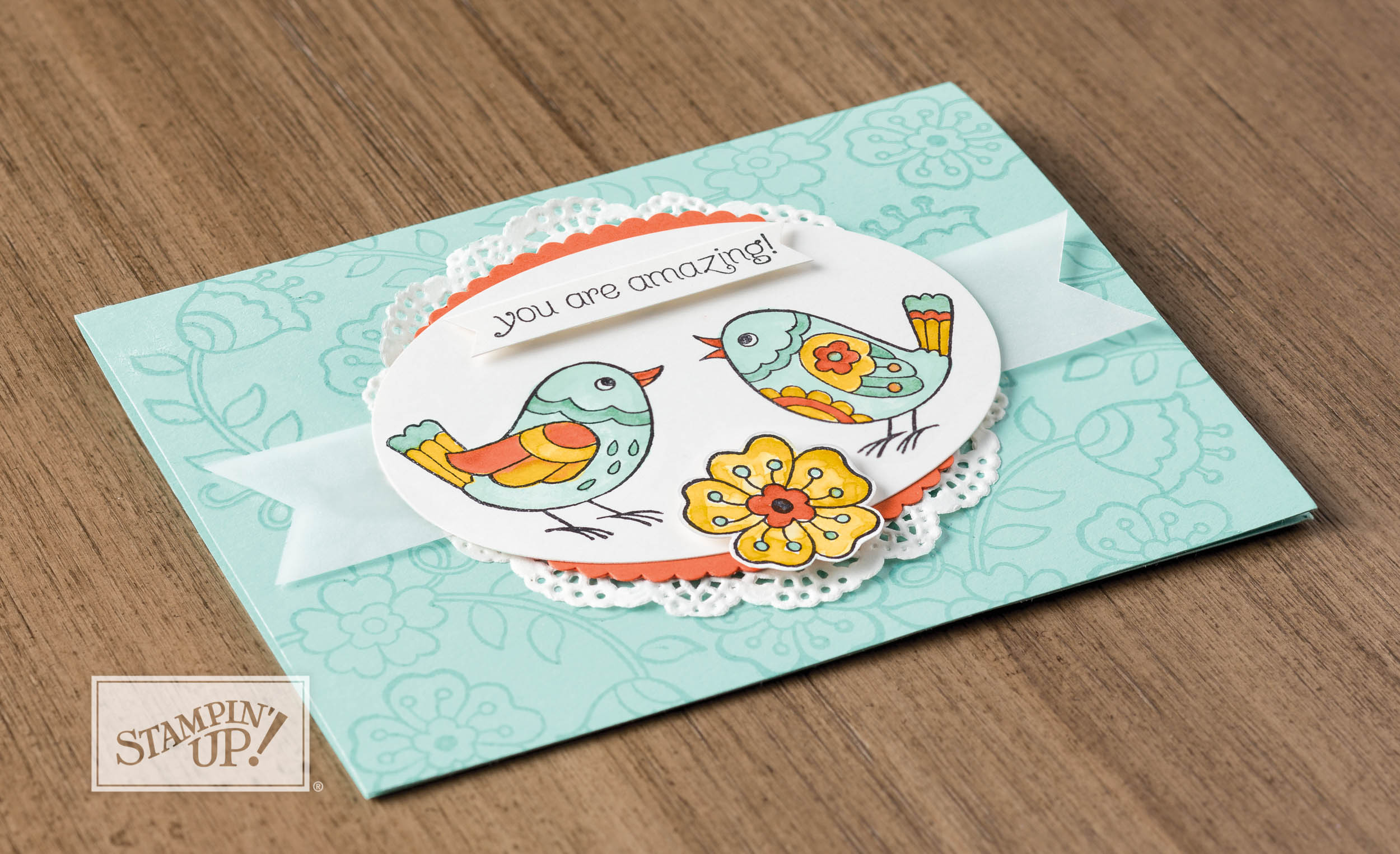 This cute stamp set is one of our exclusive “Host Only” stamp set. I love those little birds!!