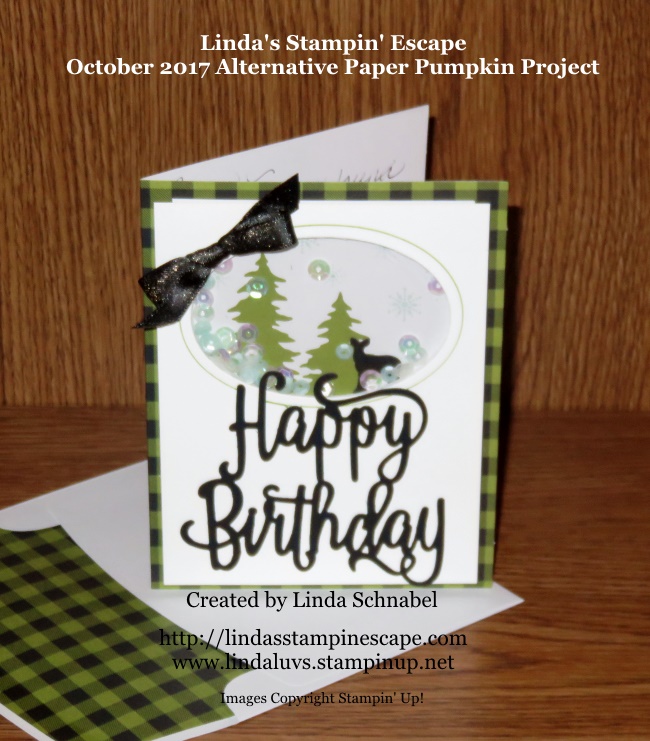 I used the October 2017 Paper Pumpkin as my base … and then I changed it up to create a unique birthday card. I wanted to use the beautiful “Happy Birthday” on my card and to do so, I had to change out the top layer of my card …  this is where I decided to use the Oval Dies to create my opening for a shaker card.