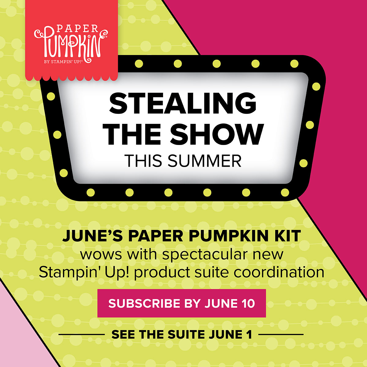Because perfectly coordinated products have always been one of Stampin’ Up!’s key strengths— they have designed June’s Paper Pumpkin kit as a stepping stone to coordinate with a spectacular product suite in the annual catalog. Wooh!