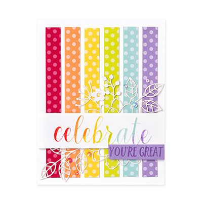 To create the multi-colored greeting the following markers where used directly onto the stamp: Lovely Lipstick, Grapefruit Grove, Daffodil Delight, Lemon Lime Twist, Pool Party and Highland Heather.