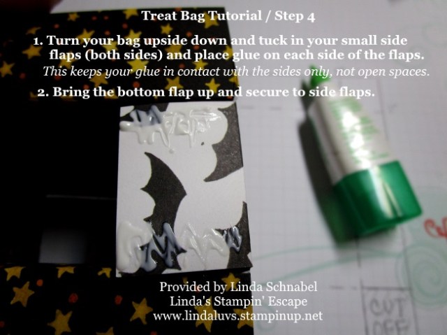 Here’s a stampin’ tip: To ensure the bottom is secure, sit your bag up and then I use a pencil with the eraser side down and give a firm push on the bottom and make sure all flaps are down and secure.  Walla … Your done.