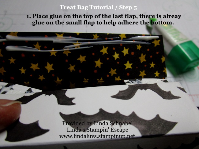 Add your glue to the sides of the flap as shown, and be sure to glue both of the small flaps. Then flip the bottom flap over the two small flaps and check your sides to see if they are aligned (so you don’t get a crooked bag).