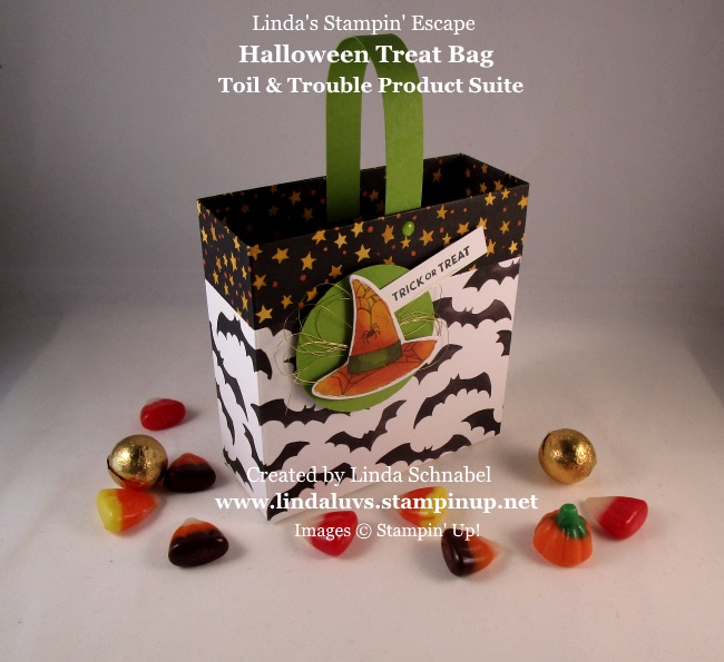 I used many of the items in the Toil & Trouble product suite found on pages 48 and 49 of the Holiday Catalog. Halloween is one of my favorite Holidays … it’s the “fun” one for me.  Fun to decorate, fun with the kids … and candy!