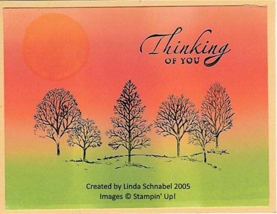 My first card is a whoot because even thought it’s been 13 years – Lovely as a Tree … Is still in the catalog, so other than the greeting, this one does not need much updating!! lol