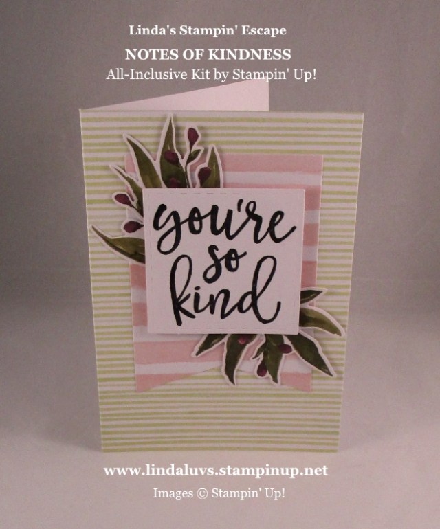 Today I’d like to share with you two cards that I have created with the All-Inclusive Card Kit; Notes of Kindness.  This card kit is perfect to have on hand if you need to make a quick card here and there, it also makes the perfect gift! You can gift it just the way it is, if your friend or family member is somewhat familiar or new to stamping, or you can create all the cards and tuck them into this pretty box. Everything you need is included!
