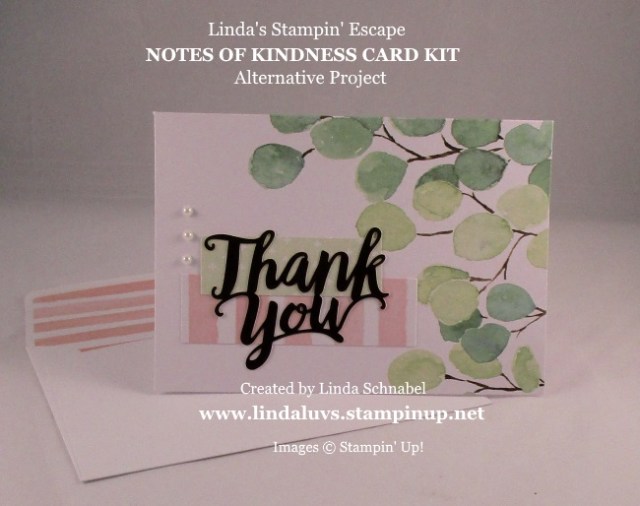 The pretty little pearls are also included in this card kit and work well at drawing your eye towards the greeting!  Did I mention the all-inclusive card kit also contains coordination envelopes? Well … it does!!