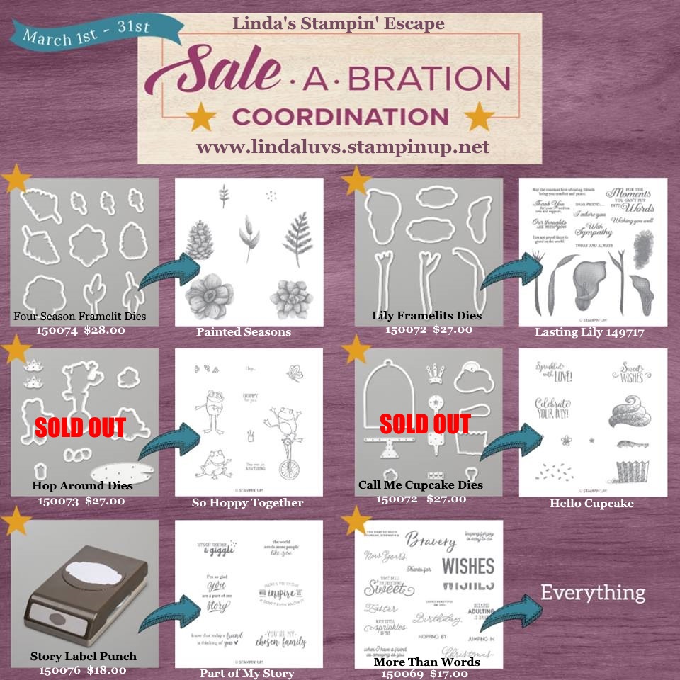 This cute bundle also has a set of dies that was released with the Sale-a-bration Coordination products … If you like these, get them quick because the Frogs and Cupcake dies have SOLD OUT already!