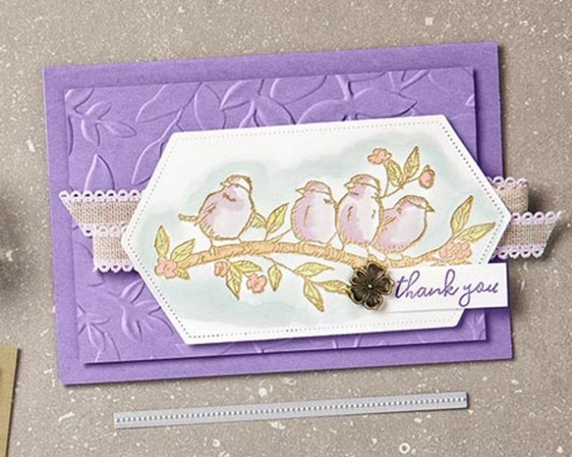 It’s a bird, it’s a plane, it’s… the Bird Ballad Suite! Get ready to swoop this adorable suite up because its beautiful imagery is a showstopper. There are so many ways to make this suite perfect for everyone in your life. With the elegant ribbon and the fun trinkets that come in the suite, all you really need is a pop of color to add just a tad bit of pizzazz, just like we did in the Thank You sample. But that’s not all you can do!