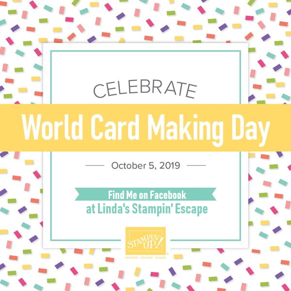 The party begins at 9 am and goes to midnight!! I’ll have fun games for you to join in on, exciting ways to WIN FREE products, and some awesome specials for you to take advantage of. Meet me on my business Facebook page … Linda’s Stampin’ Escape.