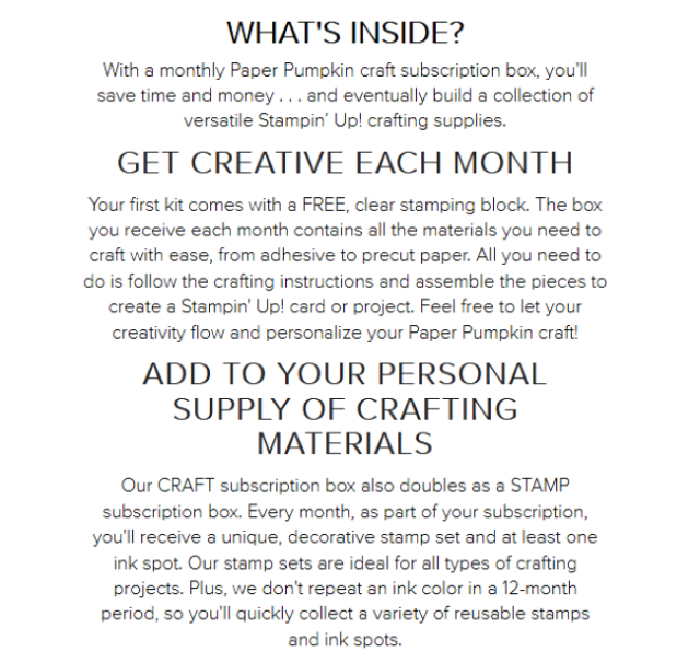 Are you looking for a special gift to send to your crafty friend or family member? Have you heard of the monthly Paper Pumpkin kit offered by Stampin’ Up! I am a HUGE fan! Why? For starters, each month the red box gets delivered to my house and it’s a surprise as to what is inside the box! It is a class in the mail all prepped and ready to go. The only extra supplies I may need are clear blocks, scissors and adhesive. I love that the kits come with instructions and are completed within a short time span! It is PERFECT for all ages!