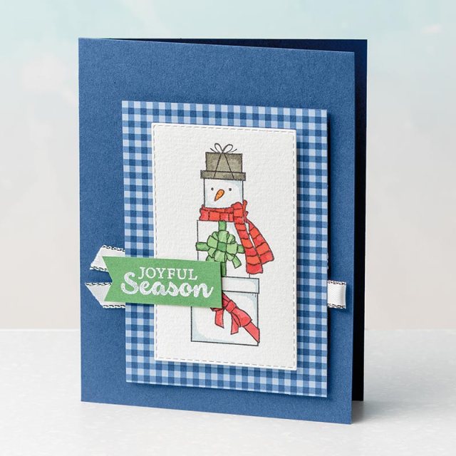 The last project I’m sharing is another card using the snowman. The simplicity of the card really highlights the snowman… and the blue just reminds you of the tones of winter.