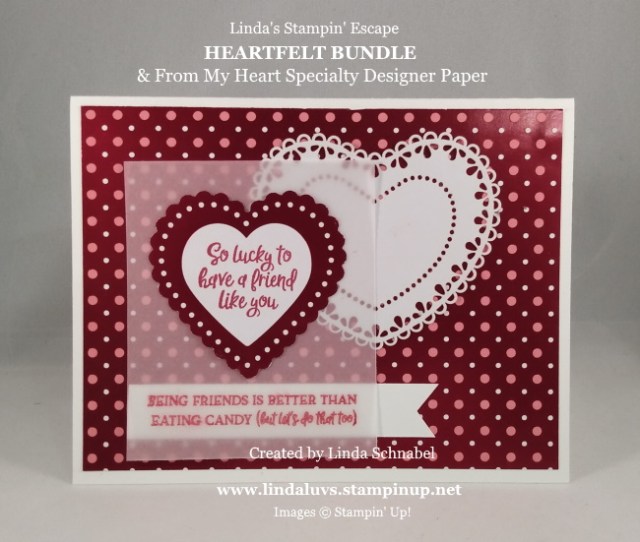 Our Heartfelt Bundle and coordinating “From My Heart” Specialty Designer Series paper is not just for Valentines, it’s great for your friends, for weddings, baby showers and more. Today it’s to celebrate life … to bring awareness to the fight against heart disease.