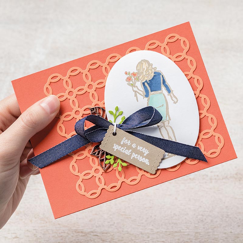 It’s so easy to tell someone how much you care when you send them a card telling them how special they are. You can add texture to your cards by adding a die cut background and some metal embellishments.