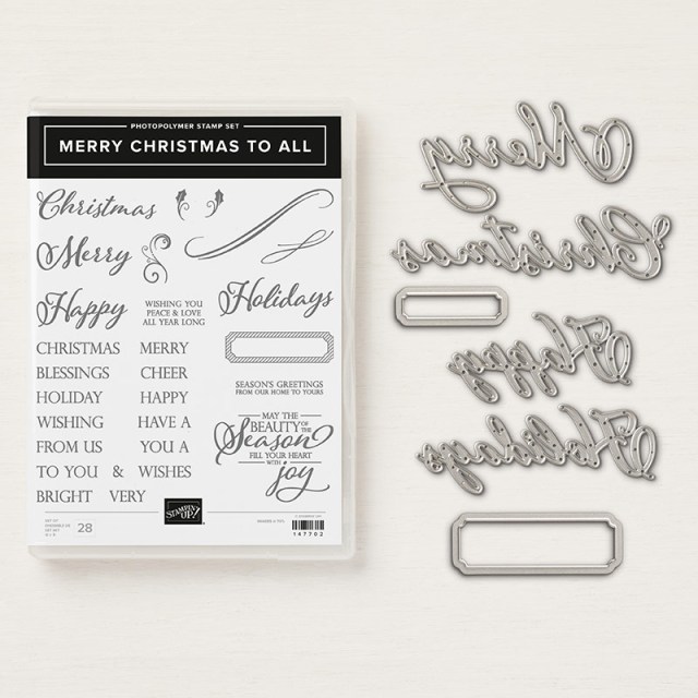 The last I’ll be sharing is MERRY CHRISTMAS TO ALL … This is the perfect stamp set and coordinating dies if you are looking for greetings and sentiments.