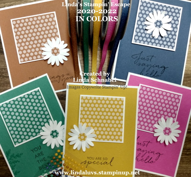 Hope you are enjoying this beautiful weekend, and thanks for stopping by! Yesterday I shared the new 2020-22 In Color; Magenta Madness! Today I have samples made using the rest of the 2020-22 In Colors: Bumblebee, Cinnamon Cider, Just Jade and Misty Moonlight.