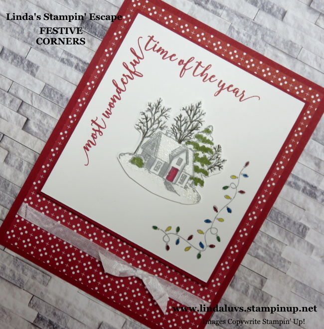 Today I have a cutie from the Festive Corners stamp set… another holiday card. We’re celebrating the Most Wonderful Time of the Year!