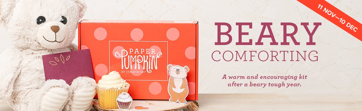 December’s cute and cuddly Paper Pumpkin kit—called “Beary Comforting”—is designed to uplift your loved ones as this beary tough year finally comes to a close. After a year like 2020, we all could use a big bear hug! With the help of this bear-themed kit, you can create 12 unbearably cute cards featuring warm and fuzzy friends, sweet stamps, and meaningful messages. Near or far, send your friends and family the extra comfort, love, and encouragement they need with this month’s Paper Pumpkin kit!