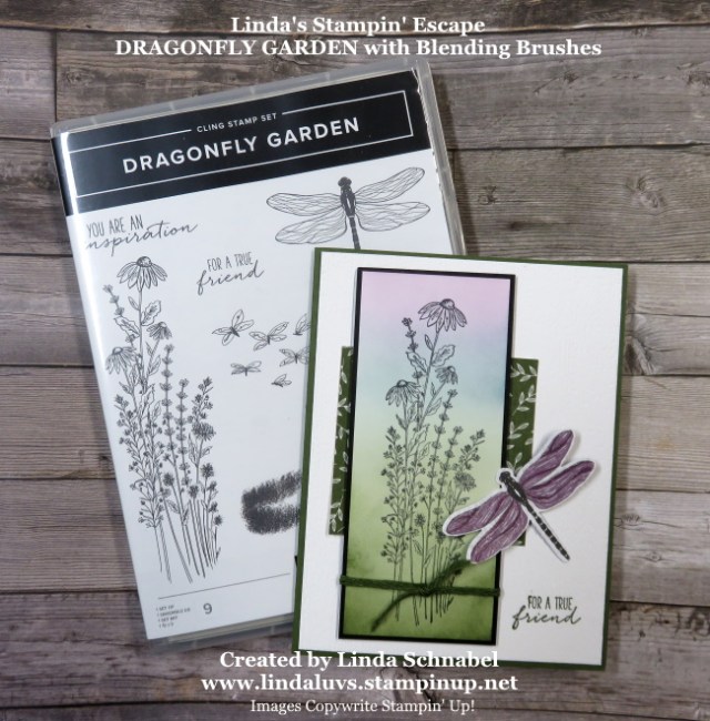 Today I have a video and card featuring the brand new Dragonfly Garden Bundle from the January – June Mini Catalog. I also highlights the Blending Brushes and how you can create a beautiful background so you don’t have to color in your entire image!