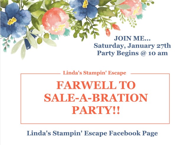 Speaking of joining the fun … don’t forget to hop on over to my Linda’s Stampin’ Escape Facebook page for the party … There will be Games * Prizes * Specials & More. The LIVE Demontration begins at 10 am Central Time!