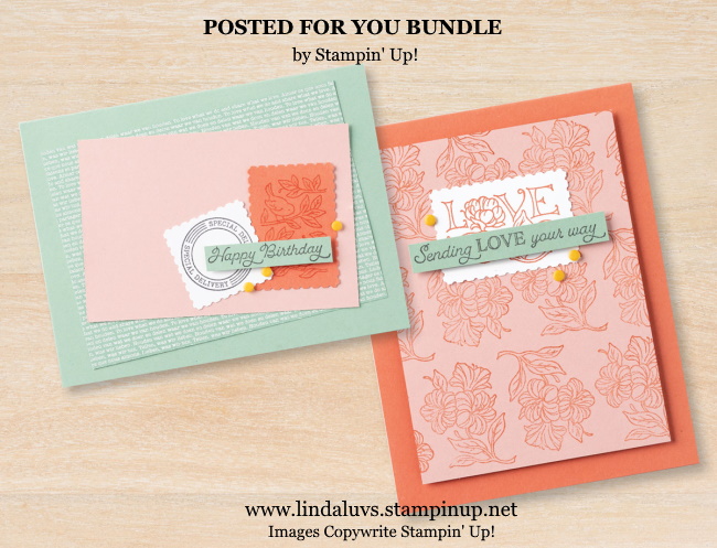 Hope you had a great weekend! Today I have two samples from the Posted For You Bundle that are featured in the Jan-June Mini Catalog. These cute cards were created by Stampin’ Up! ~