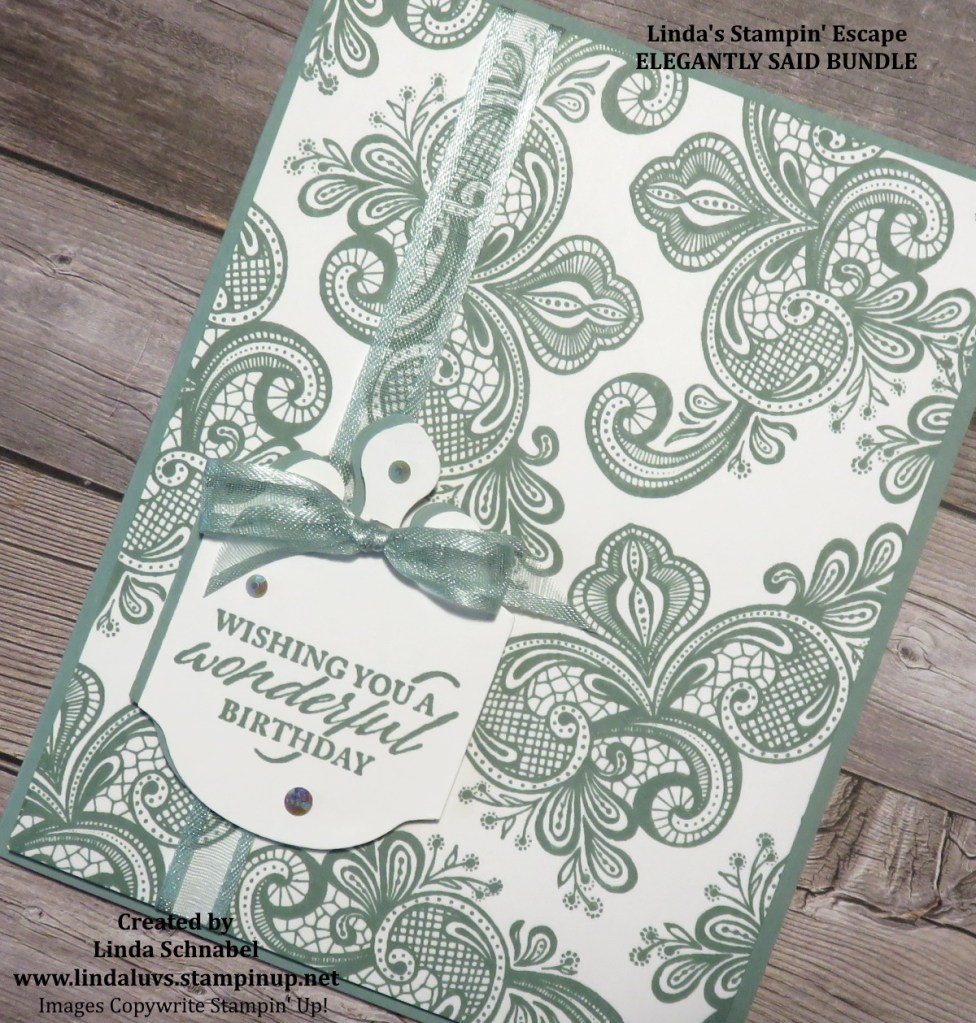 Today I have my second card out of the 5 New In-Colors to share with you. I’ve decided to use the Elegantly Said bundle on all the cards to show you the easy and versatility of this bundle as well.