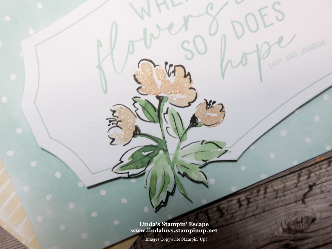The card front is the pre-pattern polka-dots card and is already scored for you… and check out the coordinating envelope! The only other thing I did on this card was give my flowers a touch of the Wink of Stella …