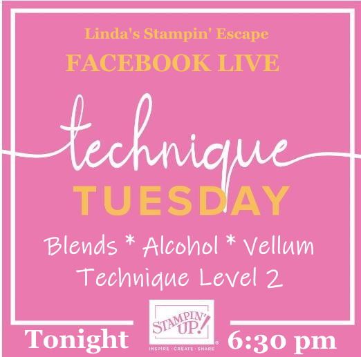 Here’s the link to Linda’s Stampin’ Escape Facebook page … CLICK HERE! Then “LIKE” my page to catch all my LIVES … Tips … and Announcements!