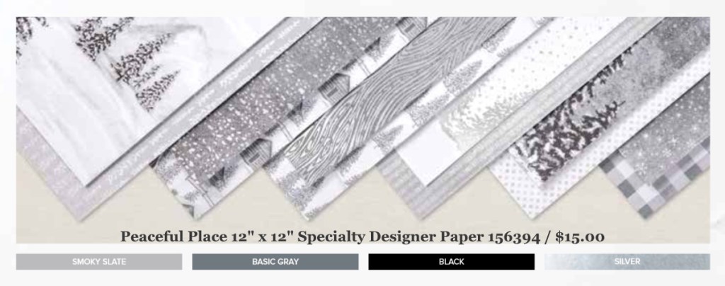 I’m thrilled to share this card today … My Stamp Club is meeting this week and we are using the Peaceful Place suite which includes the Peaceful Cabin Bundle and Peaceful Place Specialty Designer paper. You can find these goodies in the Mini catalog on pages 36 through 38.