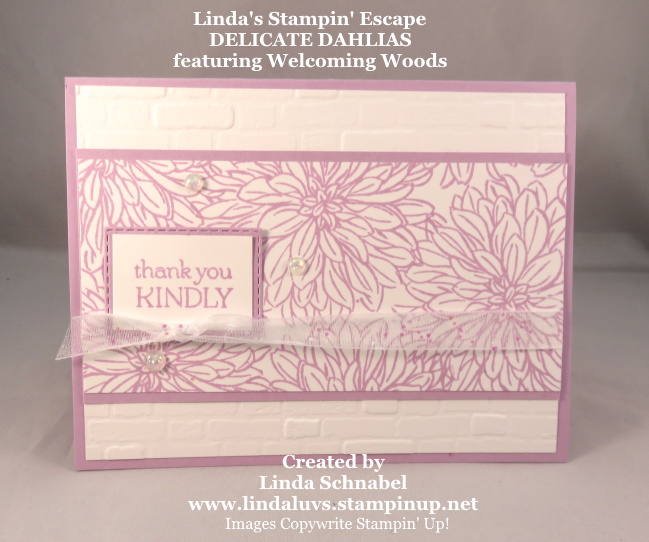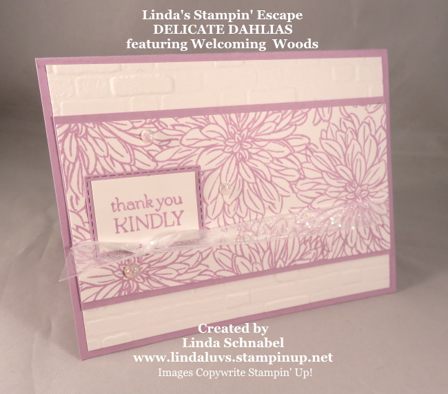 Today I have a pretty card that showcases the Delicate Dahlias in Fresh Freesia. It’s such a soft delicate color for these pretty flowers and creates a warm “thank you” for your recipient.