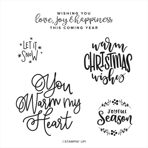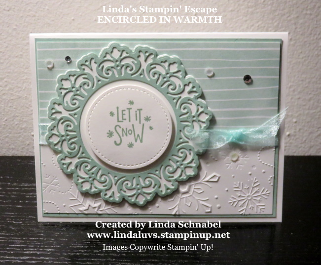 The bundle is found in the Annual Catalog and will save you 10% when purchased together. And the Encircled in Warmth Stamp set which I used on my card is found in the Mini Catalog. All together these stamp sets and dies make up a force to be reckoned with … and can be used year round for any occasion.