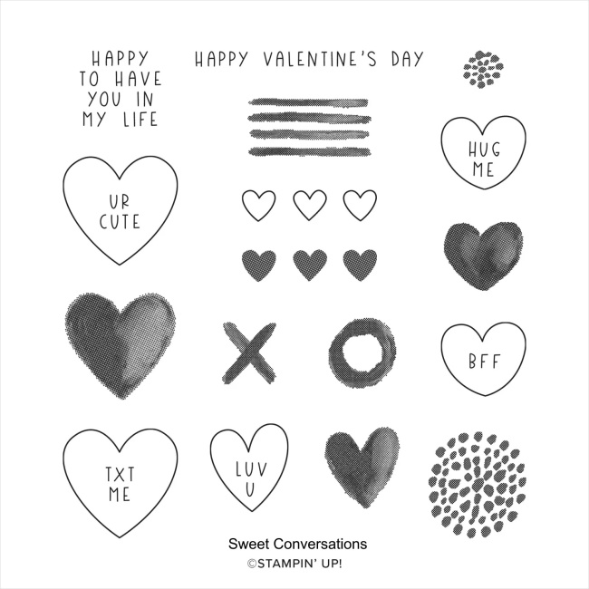 Now … while the stamp set I used has discontinued, the techniques never do!! And you can easily substitute the Sweet Conversations stamp set that I have shared with you the past few day. The Heart Punches are still in the Annual Catalog so this card would be easy to replicate.