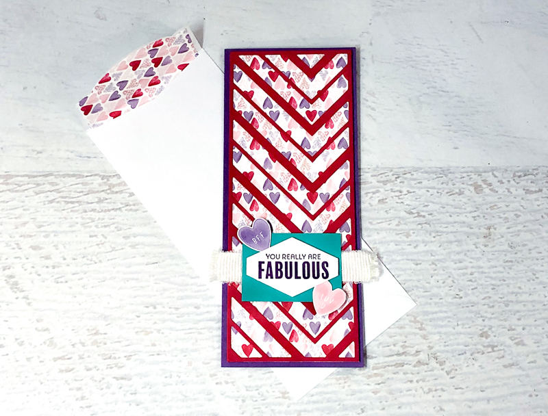 I’m so giddy about the new Slim Sayings Bundle, that I just had to use it for this month’s tutorial. I think you’ll love this fresh card style, too!