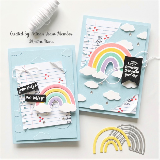 I love rainbows … do you? They are the comfort after the storm to tell us everything is alright. I have some very special cards to share with you today. These projects were made with the Rainbow of Happiness Bundle by our global Artisan Design Team members Berdien Weideveld, Martin Stone, and Tami Hewlett.