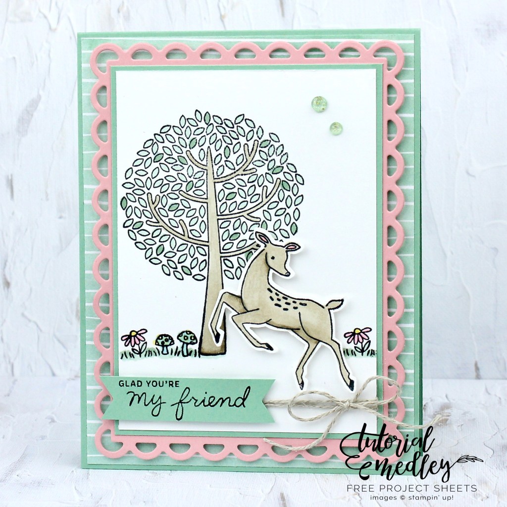 Create a super cute forest scene on your handmade cards with the Friends of the Forest Stamp Set. Use the card-sized tree as the focal point and have fun deciding where to scatter the adorable animals around the tree.
