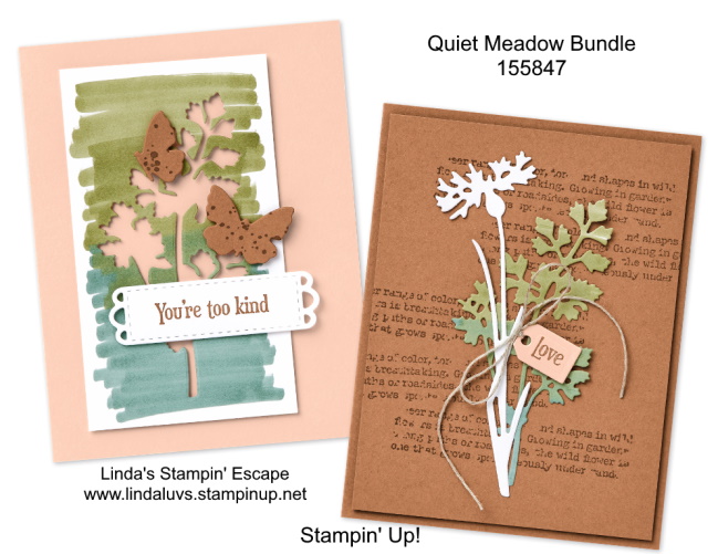 I’ve got two cards to share with you today featuring the Quiet Meadow Bundle … another amazing bundle on sale now. I’ll also be sharing step by step directions so you can create these card.
