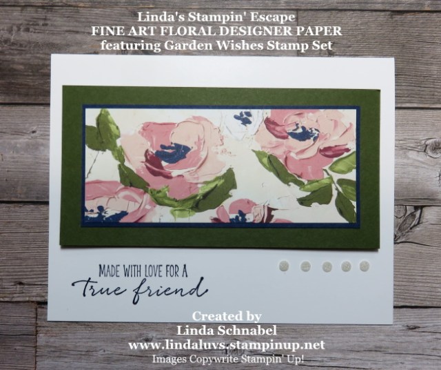 If you like this card … grab up your goodies before they are gone. I have the links below for you. The Fine Art Floral Designer Paper is gone, but this layout works beautifully with any of our amazing designer papers.