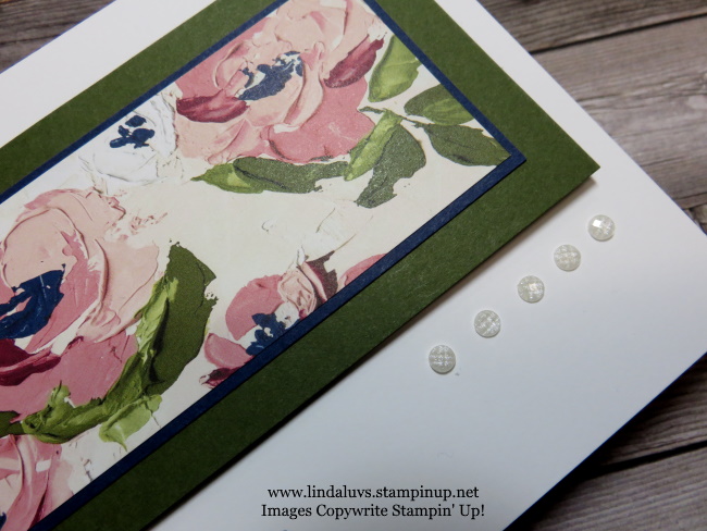 If you like this card … grab up your goodies before they are gone. I have the links below for you. The Fine Art Floral Designer Paper is gone, but this layout works beautifully with any of our amazing designer papers.