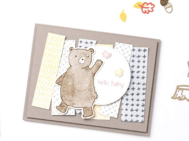 Yesterday I shared my version of a card that I cased from the catalog. It was my challenge from my Design Team I’m on … so today I thought I would share that card with you! I picked “Hello, Baby” card in the upper right-hand corner on page 46 of the Annual Catalog.