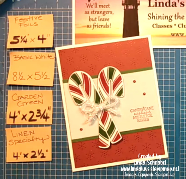 I did put the dimensions for the card in the video but here they are again (above) for quick reference . I will list the ingredients for the card below … the Festive Foils Specialty paper and the Iridescent Trim are both on the Weekly Deals through midnight September 28th.